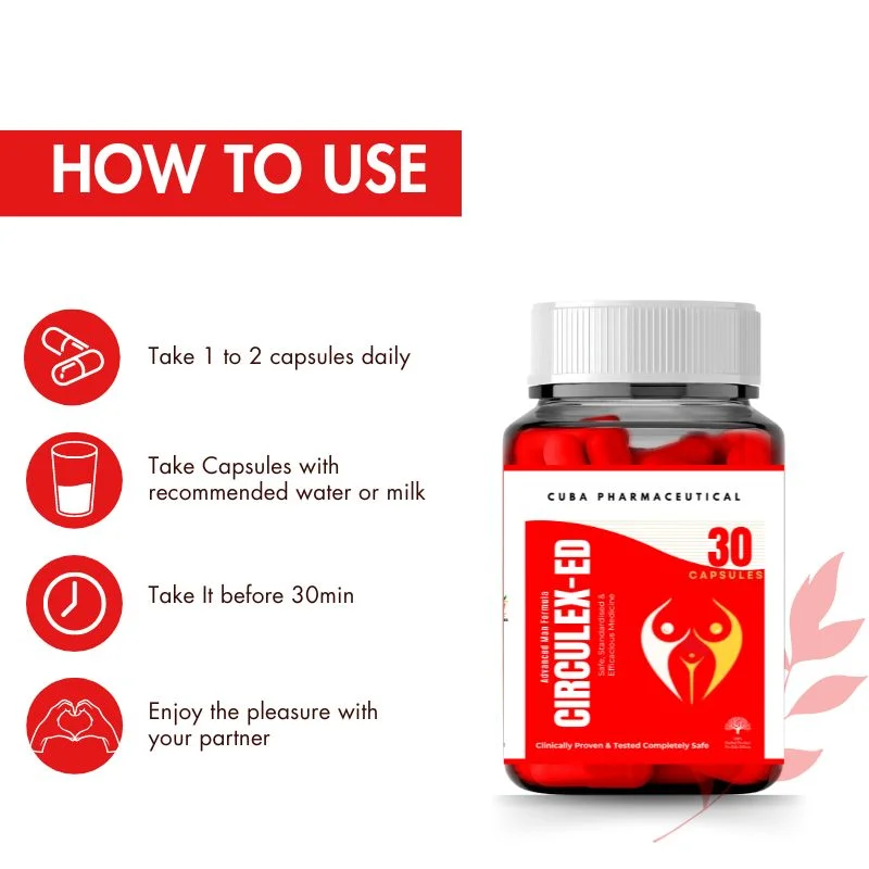 Circulex-ED is a premium Ayurvedic supplement formulated with a powerful blend of natural herbs like Kaunch Beej, Gokshuru, Ashwagandha, Safed Musli, and Shatawar. These time-tested ingredients work synergistically to enhance sexual stamina, timing, and overall performance. Ideal for men seeking increased strength, endurance, and satisfaction, Circulex-ED helps restore confidence by naturally boosting vitality and energy. Whether you’re looking to improve bedroom performance or simply feel more invigorated, this supplement supports your wellness goals with the wisdom of Ayurveda. Experience long-lasting pleasure and renewed self-assurance with every dose of Circulex-ED.