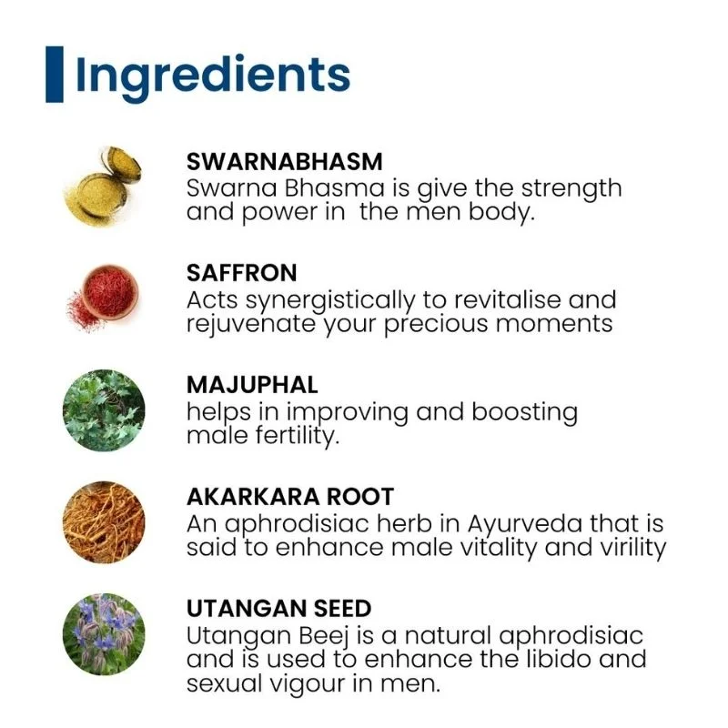 - Akarkara Root: Enhances libido, delays ejaculation, and aids in addressing male sexual concerns.